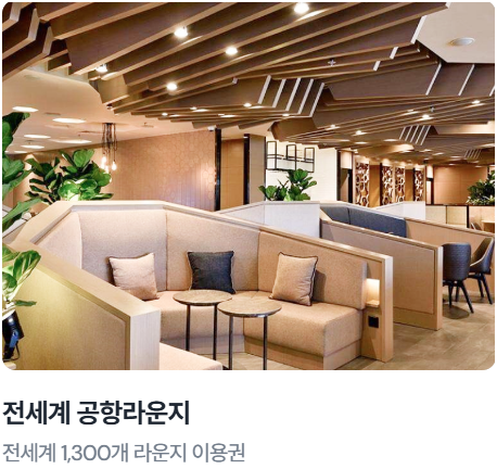 카드 이용 시 공항 라운지의 다양한 혜택을 누릴 수 있는 기회를 제공합니다.
