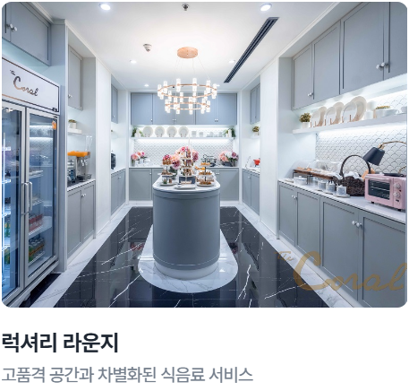 또한 식사와 음료를 제공하기에 공항에서의 긴 대기 시간을 더욱 즐겁게 만들어 줍니다.